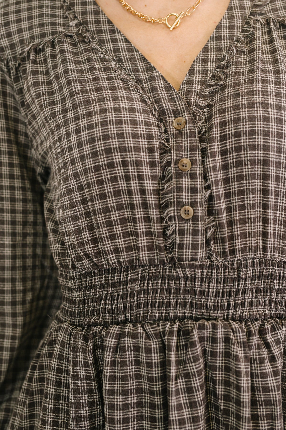Step into a storybook moment with the Fairytale Plot Plaid Midi Dress, a charming woven piece that's equal parts whimsical and wearable. The flattering V-neckline and half-front button closures offer easy styling, while the smocked elastic waistline creates a dreamy silhouette. Functional side pockets keep your essentials close, and the lined skirt ensures comfort all day long. Perfect for spinning tales at brunch or creating your own adventure.