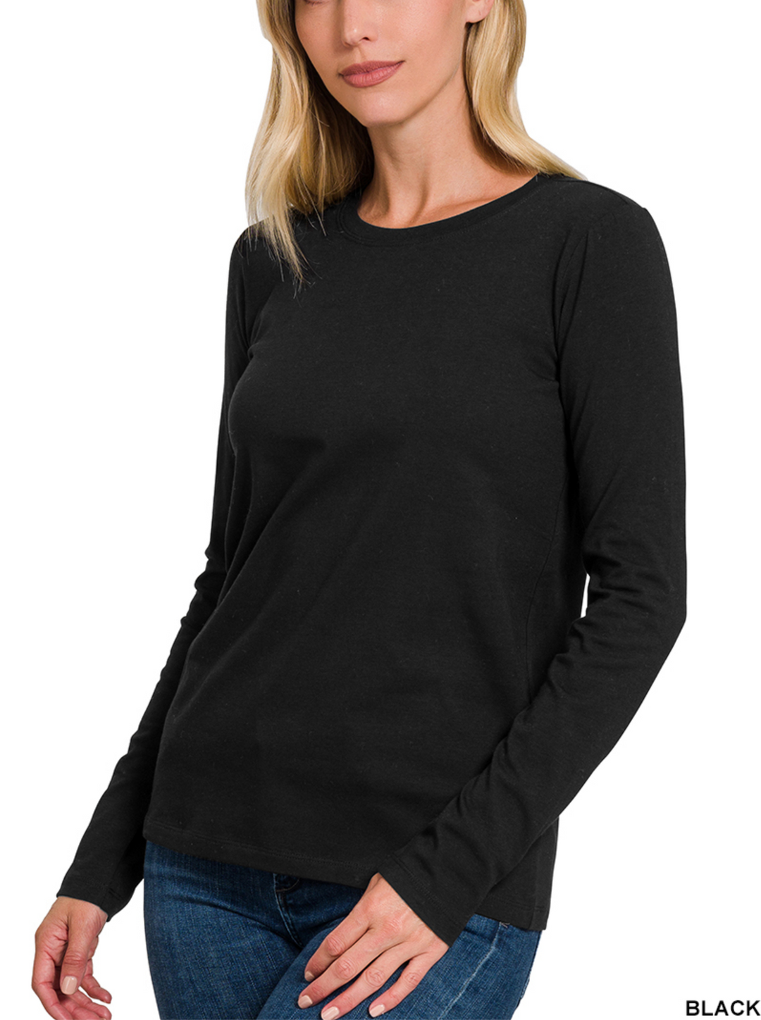 COTTON CREW NECK LONG SLEEVE T-SHIRT- Zenana