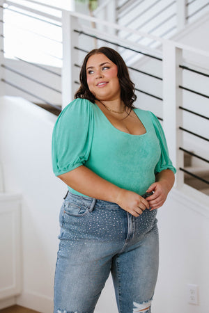 A Total Vision Square Neck Bodysuit in Mint