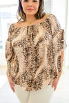 Add a touch of the wild to any look with the Desert Romance Animal Print Blouse. This bold and beautiful blouse will keep you looking chic and stylish, with its soft flutter sleeves and elasticized neckline that can be worn off-the-shoulder for a sultry finish. Be daring and make a statement in animal print.