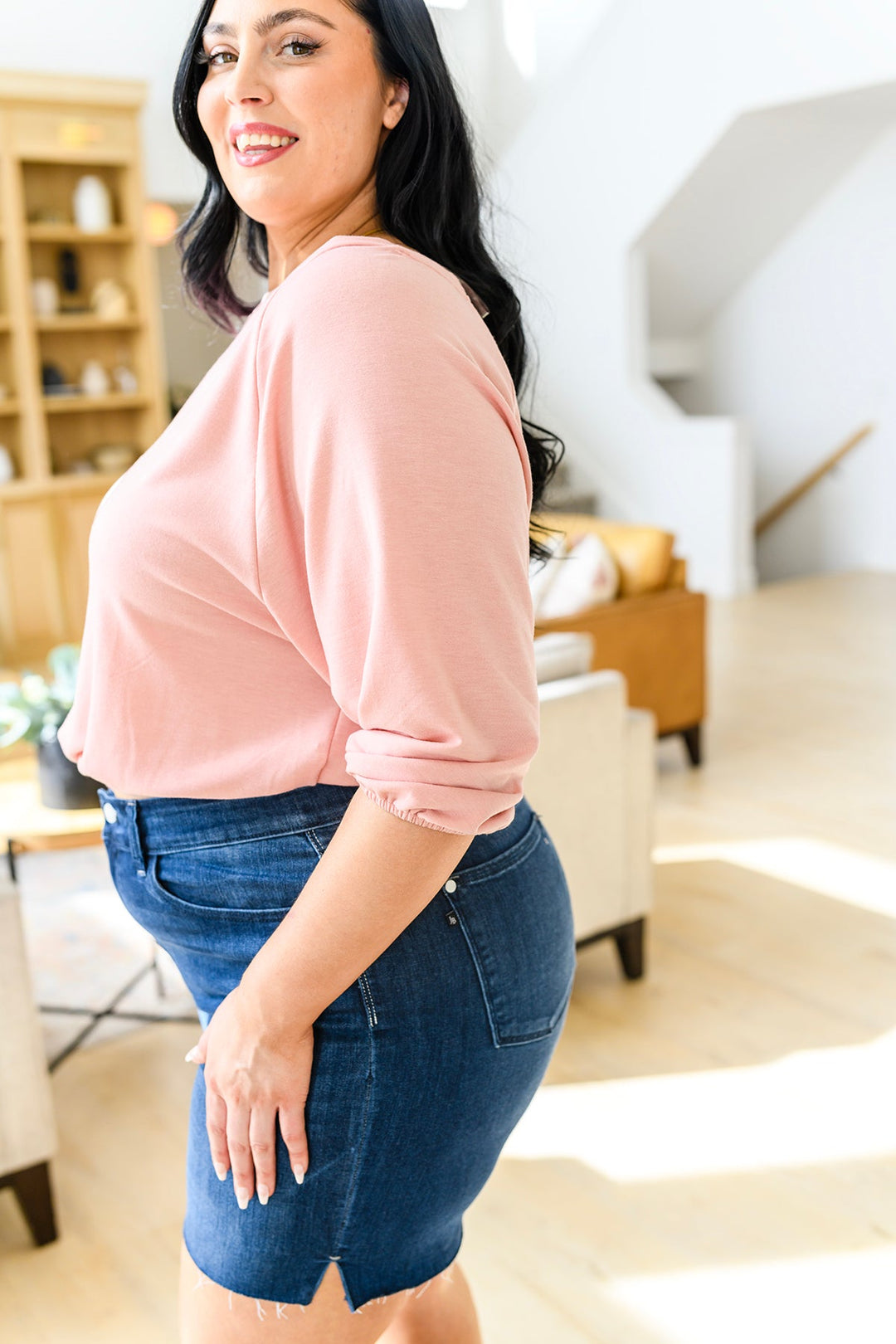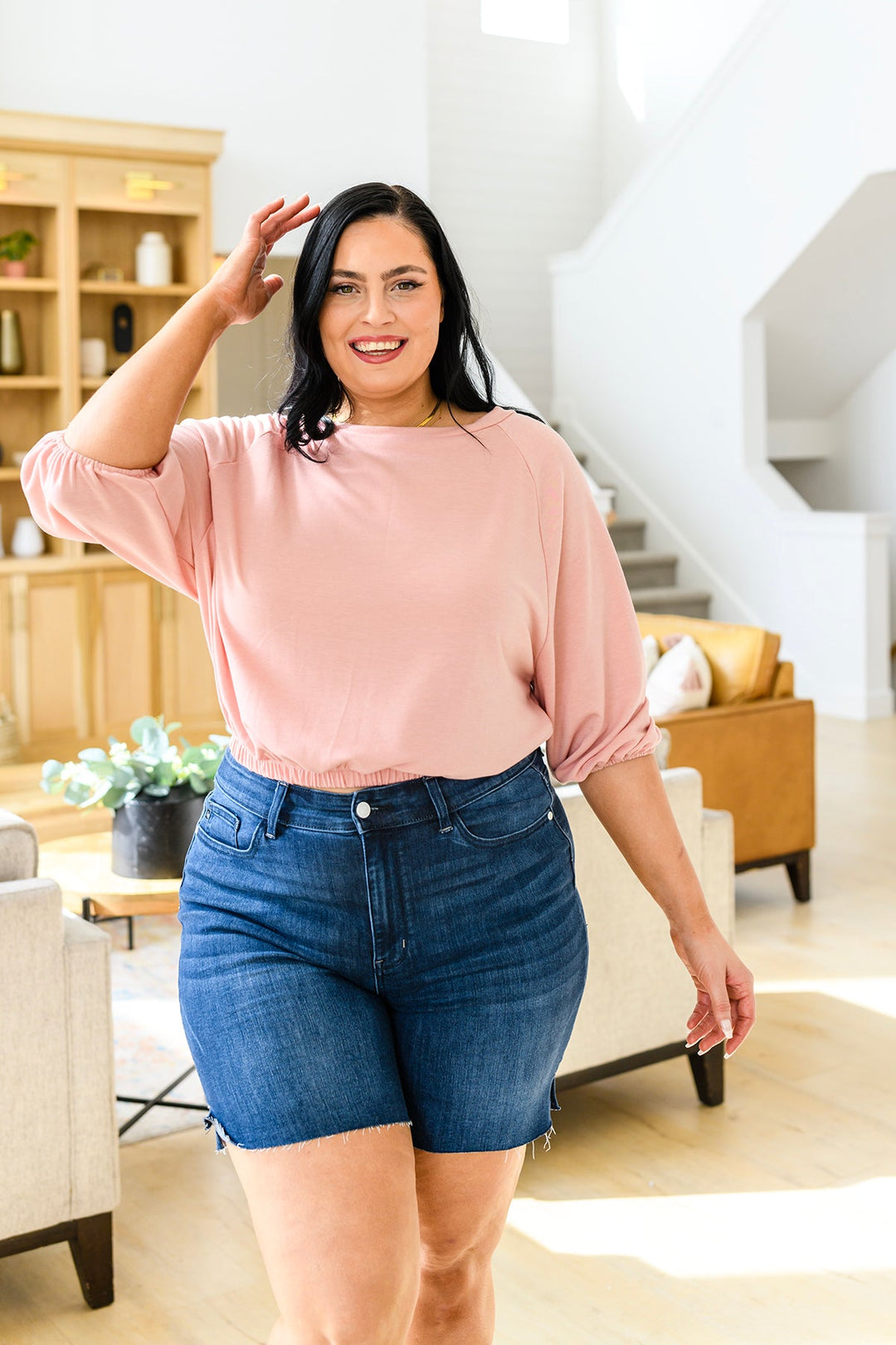 The Don't Go Yet Top was made for maximum comfort and style! The elasticated cuffs and waistband combined with the three quarter balloon sleeves, round neckline, and soft jersey fabric make for the perfect go to top! Pair with denim and pumps for a chic look!