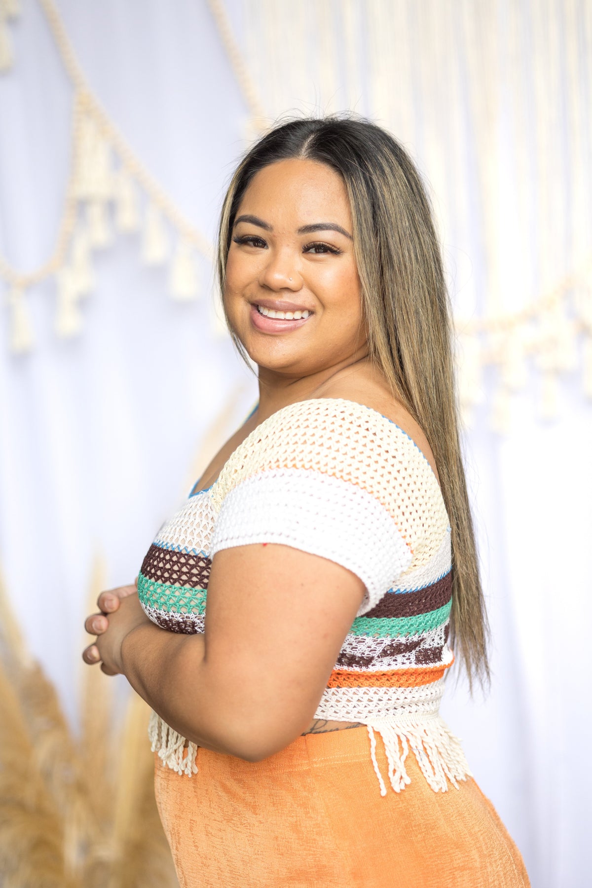 This crochet top is a total dream! Featuring a square neckline, short sleeves and fringed hem, you will feel free to do anything in this top!