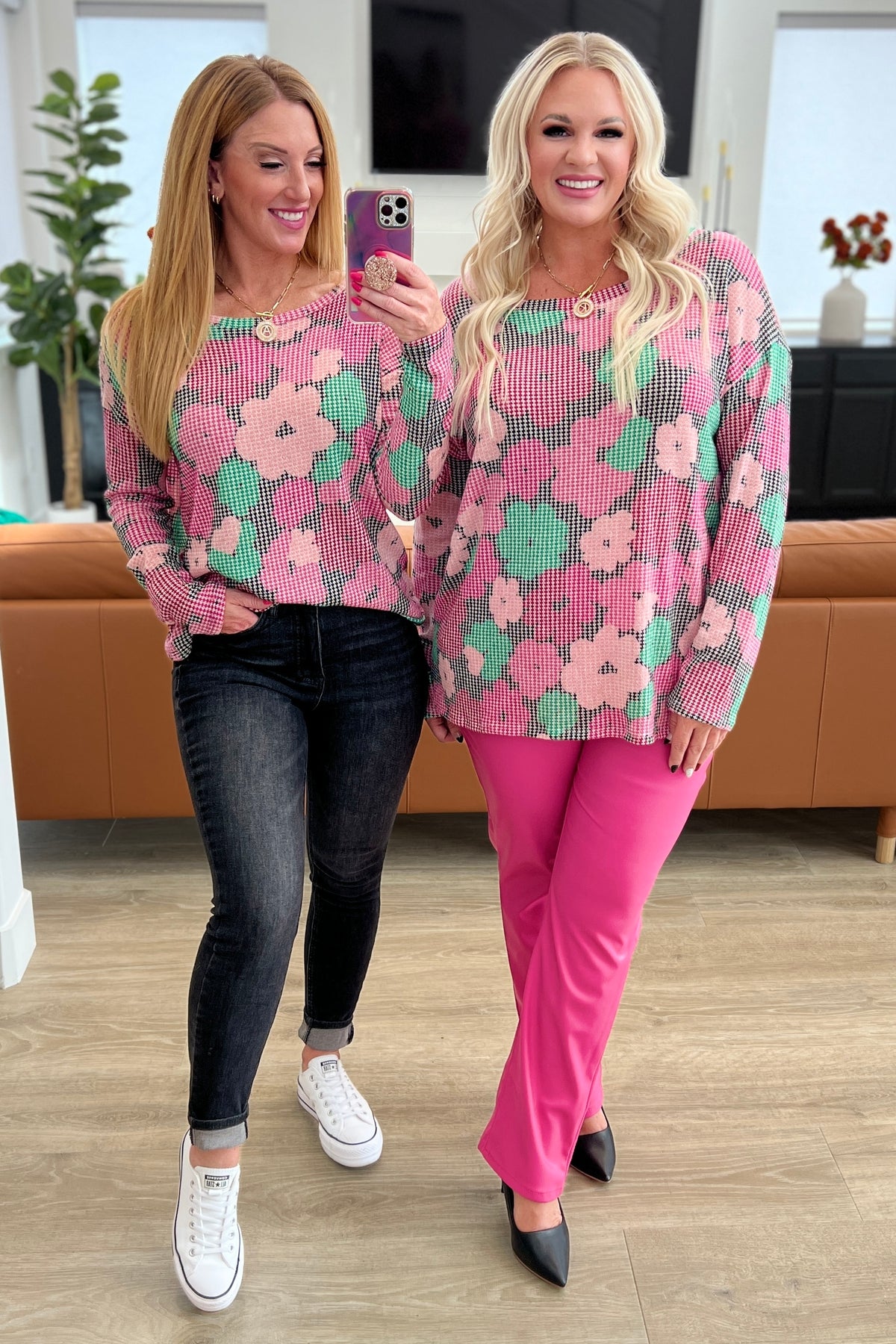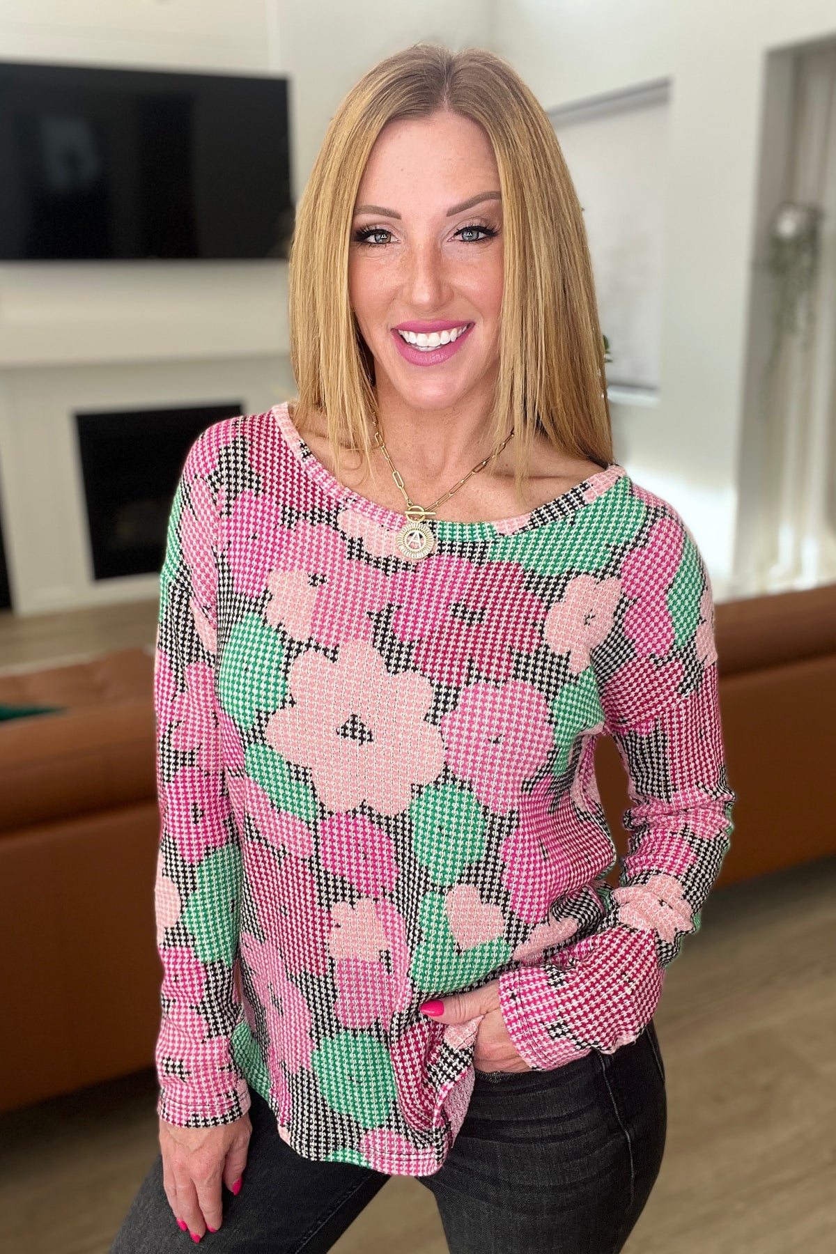 This Group Chat Floral Top is perfect for any occasion! Its waffle knit construction provides a unique texture, while its round neck and long sleeves add a classic finishing touch. Its vintage floral print and two-tone color palette make it a timeless must-have. It's a great addition to your wardrobe!