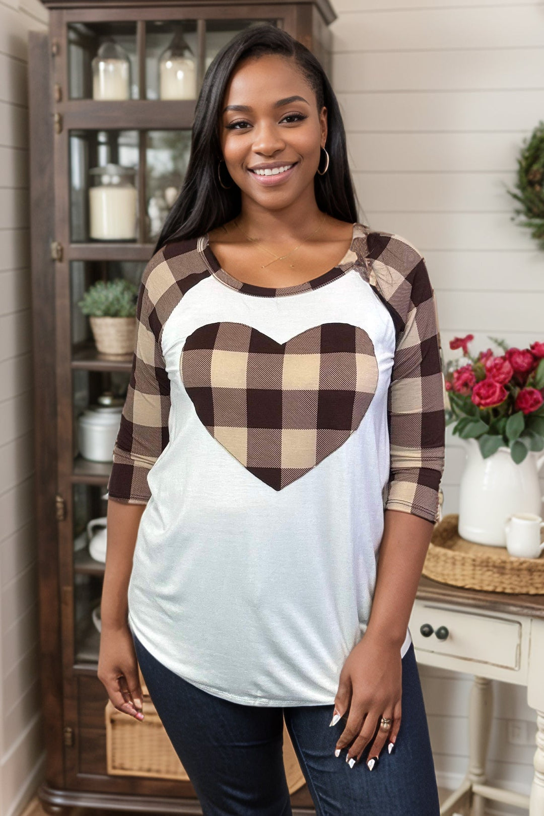 Get ready to fall in love with our Heart of Plaid Raglan! This playful 3/4 length sleeve raglan features a unique brown plaid heart on the body and brown plaid sleeves, adding a pop of fun to the classic cream body. Perfect for those who don't take themselves too seriously (but still love to show off their style).