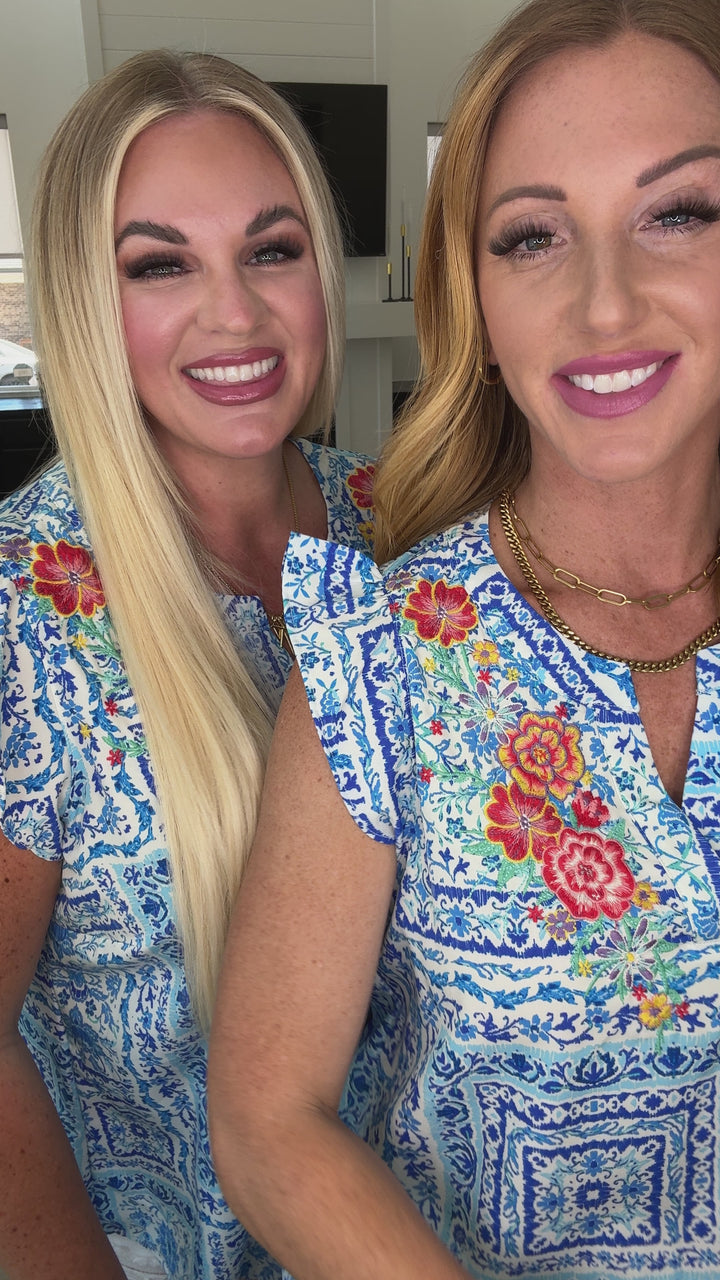Introducing the Keep Me Coming V-Neck Top in Ivory Royal! Featuring a soft woven fabric and a flattering v-neckline, this top is perfect for any occasion. The cap flutter sleeves add a delicate touch, while the machine embroidered detail and back pleat add a unique twist. Stay stylish with the scoop hemline.