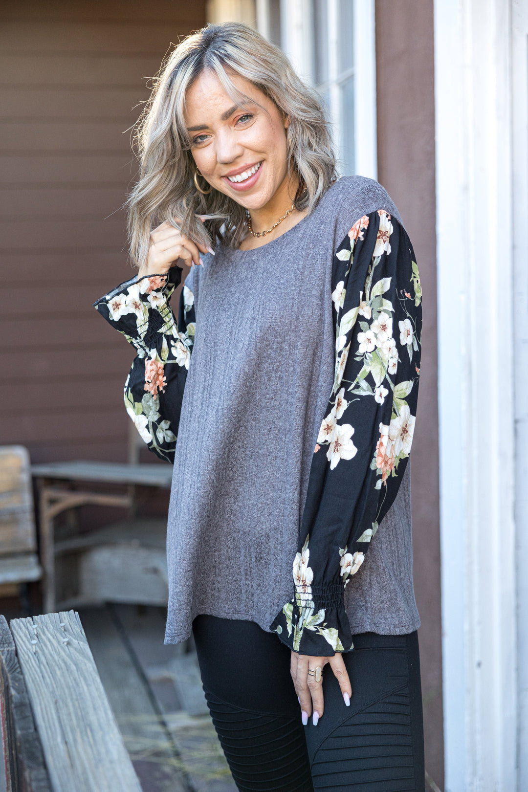 This long sleeve top is sure to uplift anyone who puts it on. Made from a soft brushed hacci, this top features a relaxed fit, round neckline and long balloon sleeves.