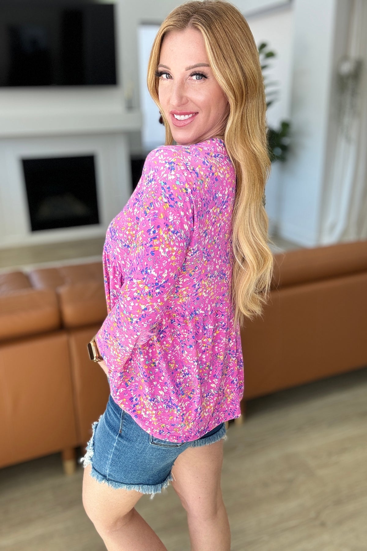 Lizzy Babydoll Top in Magenta Brushstrokes