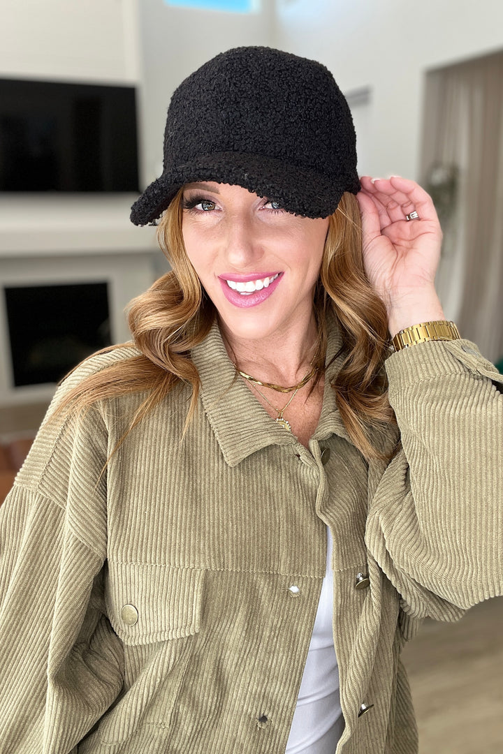Stay warm and stylish with our Lyla Sherpa Ball Cap! Made with boucle sherpa fleece, it will keep you cozy on chilly days. The adjustable velcro back ensures a perfect fit, while the classic dad hat style adds a touch of timeless appeal. Perfect for any outdoor adventure or casual day out.