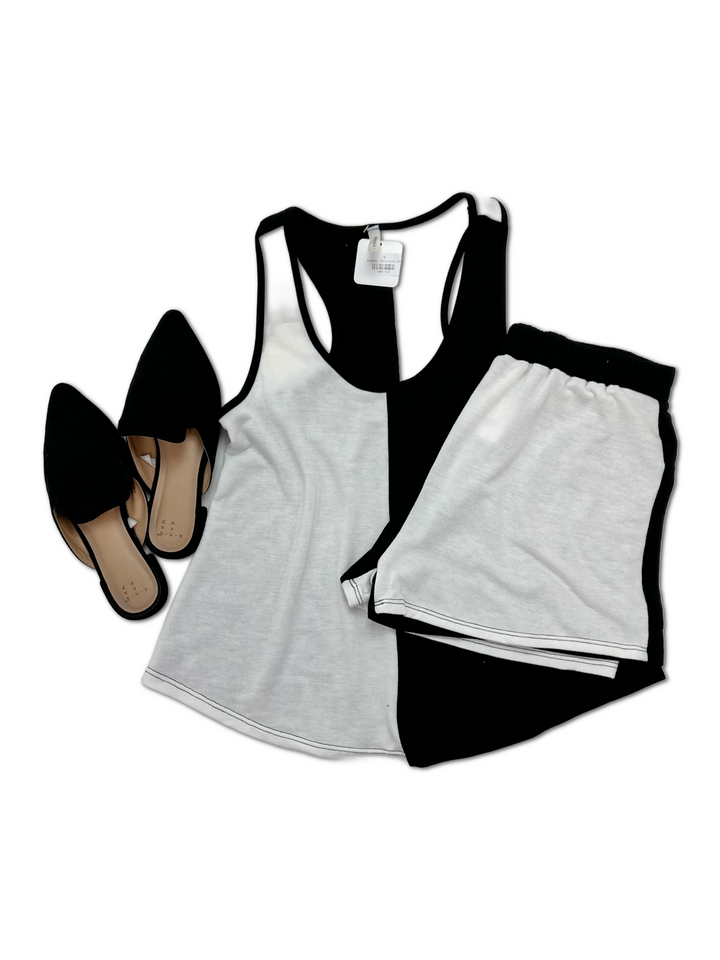 Dive into style with our Poolside Terry Lounge Set! Made of soft terry material, this matching set features a playful color block design in yellow and white. Feel free to race around while staying cool and comfortable with the racerback tank top. A must-have for your summer wardrobe!