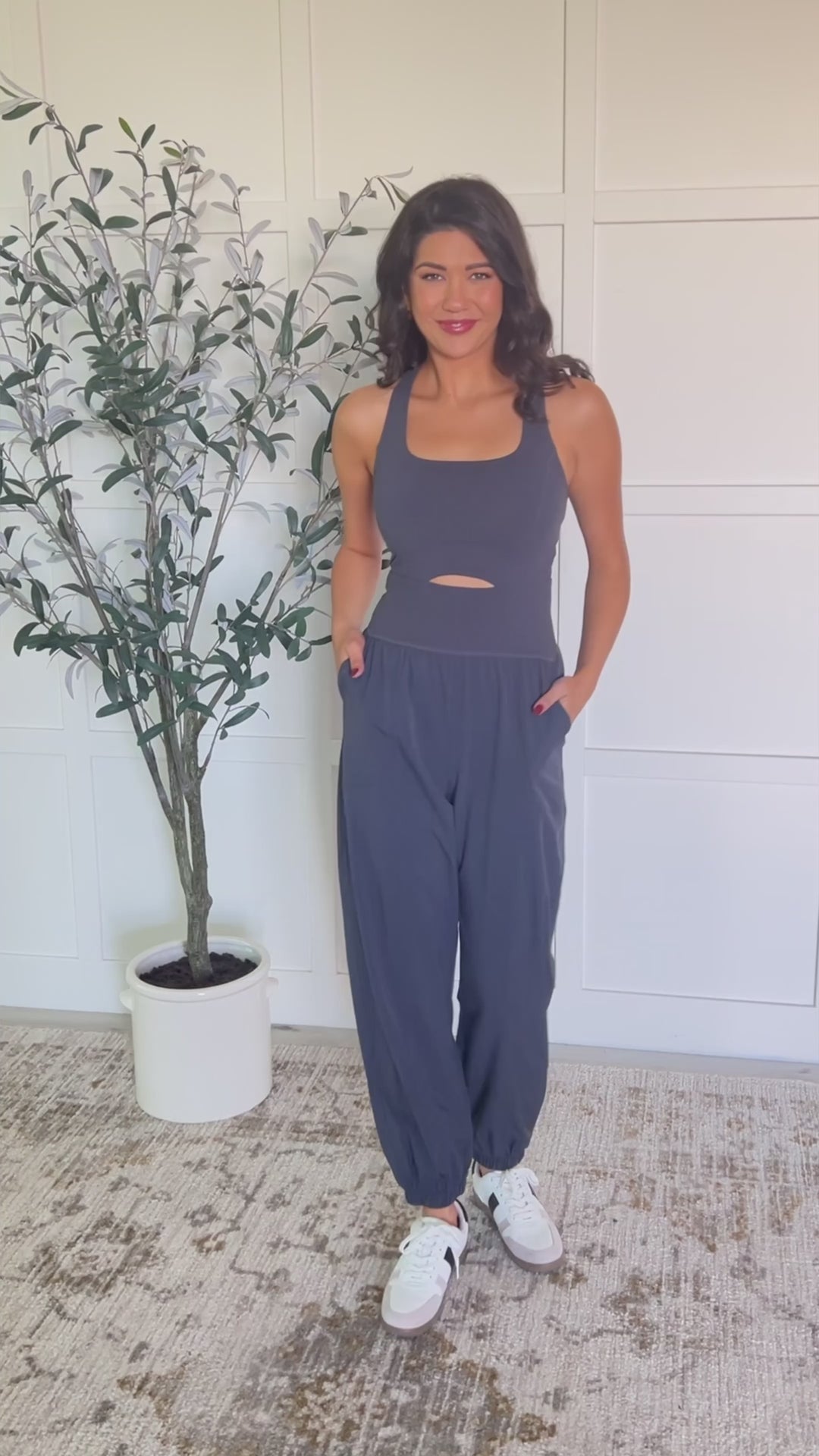 Experience ultimate comfort and style with our Raising Heart Rate Cutout Jumpsuit! Made with brushed microfiber for a soft feel, this piece features a square neckline and crossed back straps for a feminine touch. The cutout detail adds a trendy element, while functional side pockets provide convenience. Perfect for workouts or everyday wear.