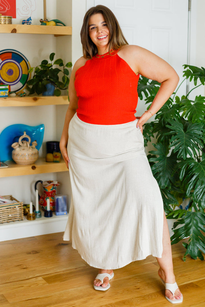 We're storing away our winter knits and bringing out the summer knits instead with the Red Memories Tank! Feel confident in the round halter neckline, body hugging silhouette, sleeveless cut and criss-cross detailing. We love the way this looks with white jeans and nude sandals or heels for a chic summer look!