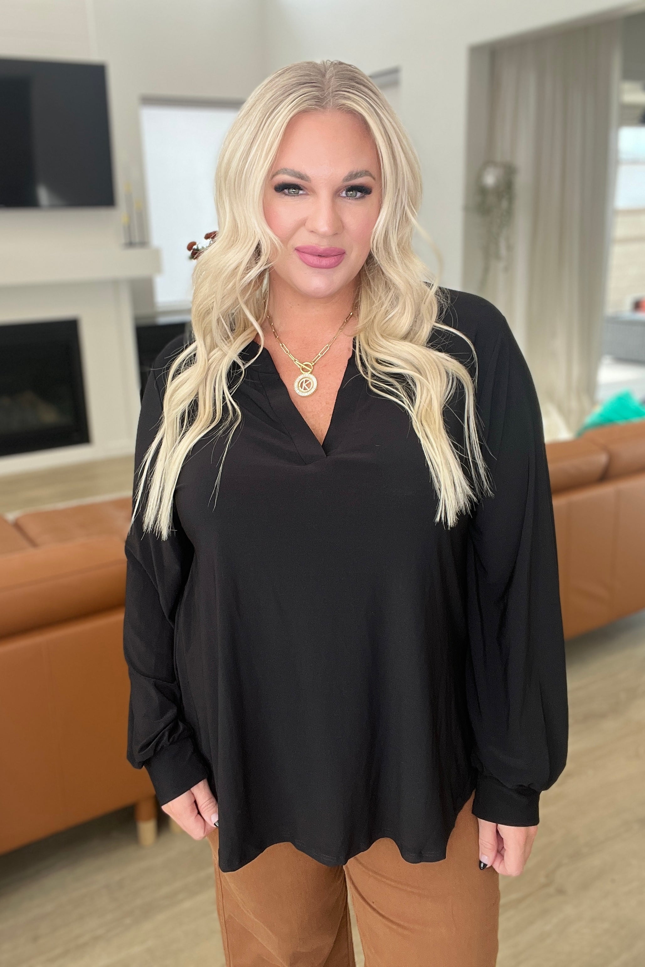 This Relatively Relatable V-Neck Top is the perfect every-day statement piece. It features a gabby v-neckline, balloon sleeves, and an easy to wear knit fabric that makes it incredibly comfortable. Look chic and feel cozy with this top!