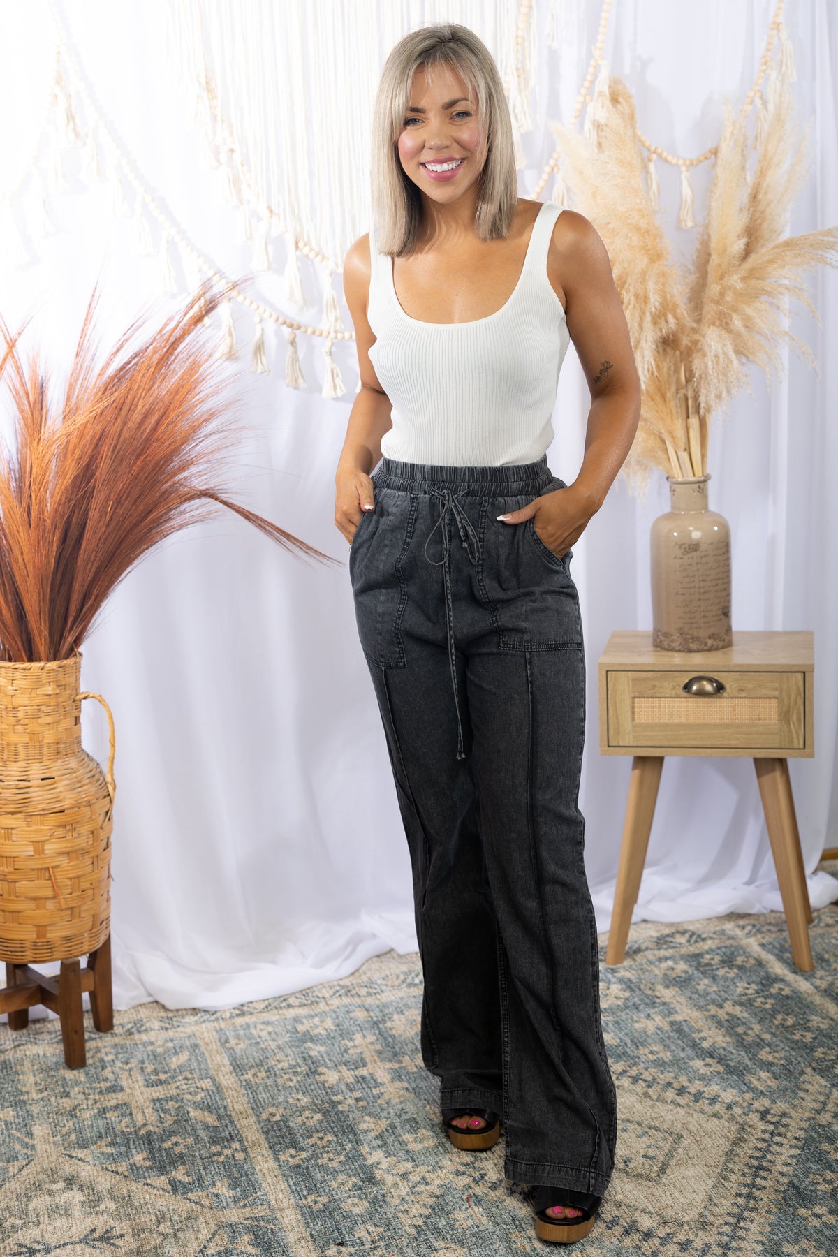 Slay your off-duty look with these Relax & Unwind Chambray Pants! From the mineral-washed fabric to the easy elastic waist, these are the coziest pants around—perfect when you wanna put your feet up and veg out like a cool cucumber. Rock on!