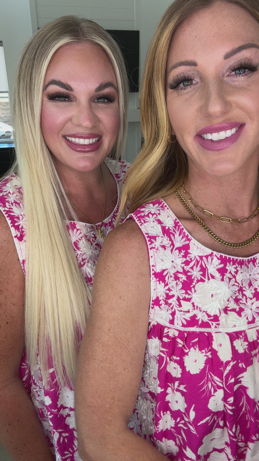 Get ready to turn heads with our Silly Love Songs Floral Tank! Made with woven fabric, this tank features a scoop neckline and trendy tank silhouette. The machine embroidered details add a touch of fun to this hot pink beauty. Perfect for any occasion, it's a must-have for your wardrobe.