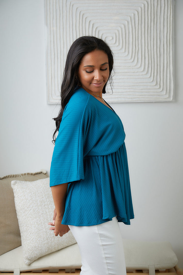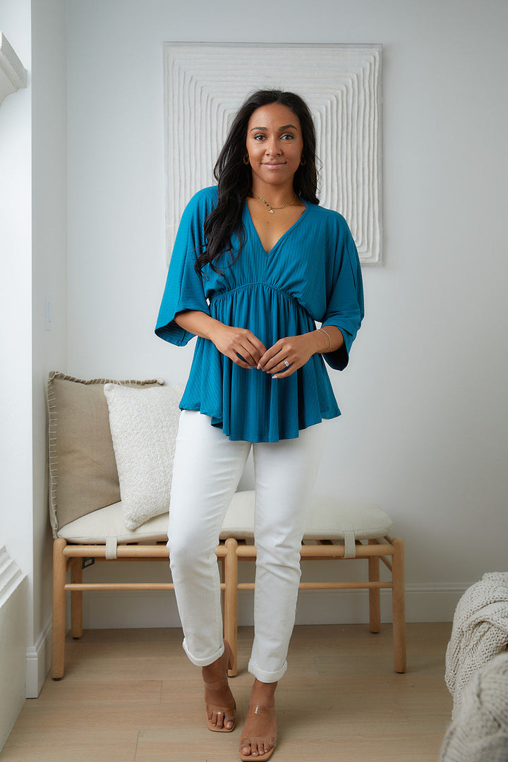 Storied Moments Draped Peplum Top in Teal