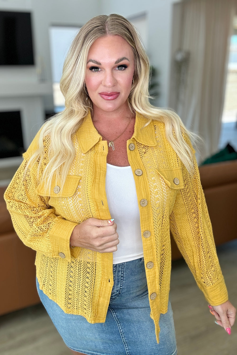 Experience our exquisite Sweeter Than Nectar Lace Button Down in Honey. Crafted with delicate sheer lace, this button down is designed with your comfort in mind, featuring long sleeves, it can easily be layered over your favorite tank or bralette. Make a statement today and embrace effortless fashion!