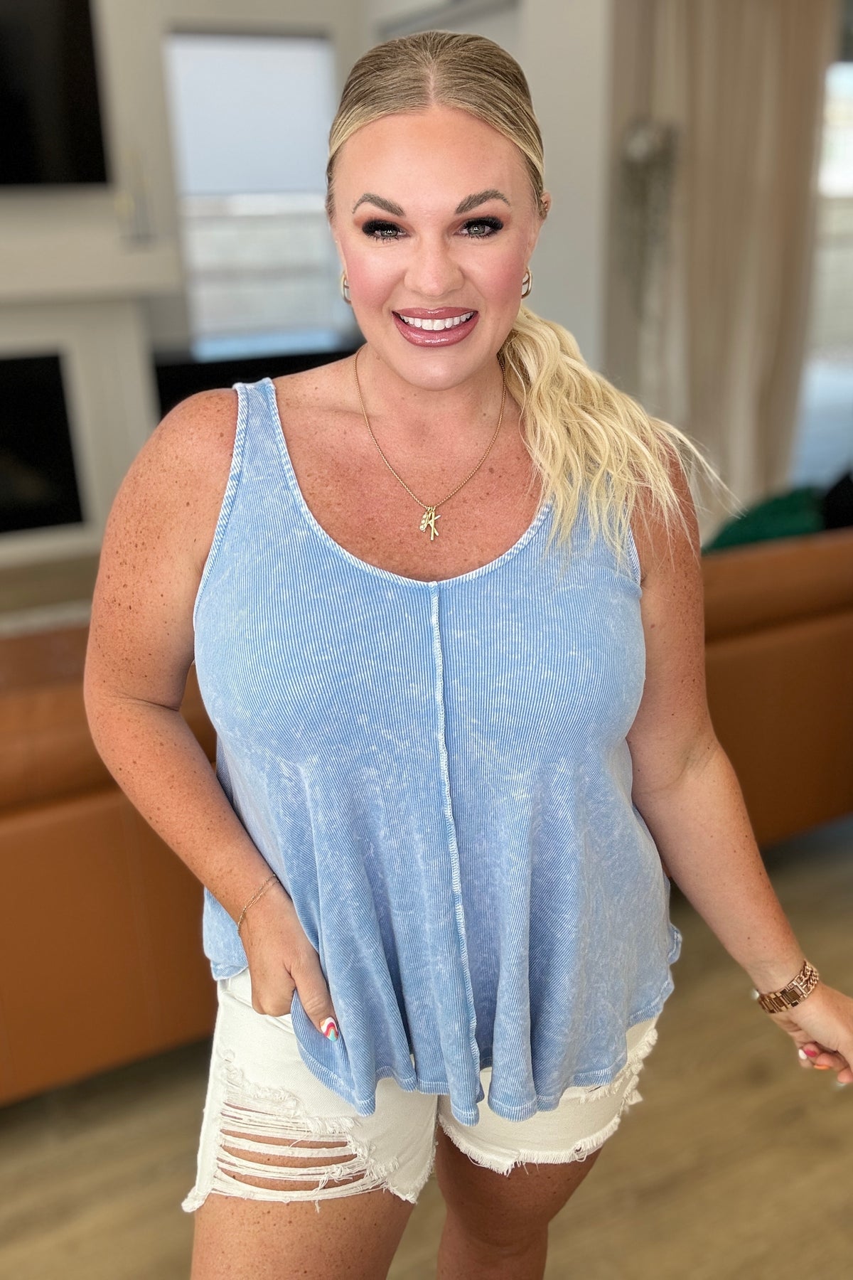 Step into summer style with the Swing Low Swing Tank! Designed with a scoop neckline front and back, it's crafted with corded ribbed knit for an ultra-comfy fit. Exposed center seams and a swing silhouette add visual interest, while the mineral washing process creates a soft hand feel. Effortless chic and unbeatable comfort!