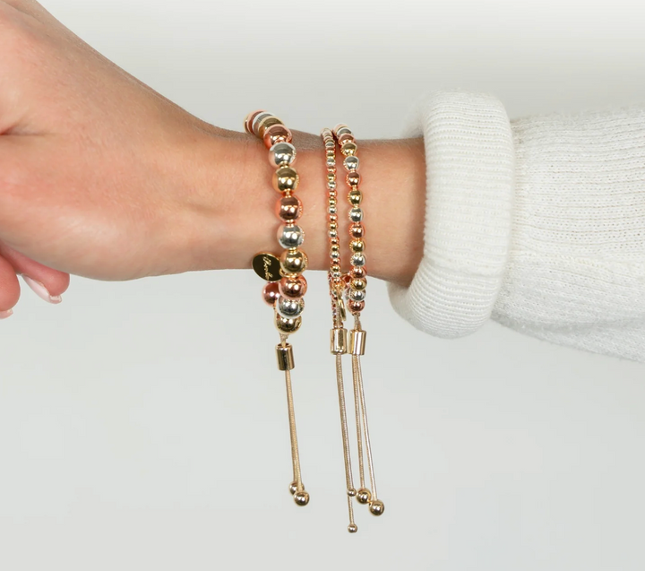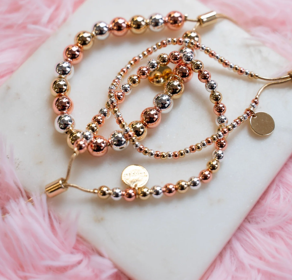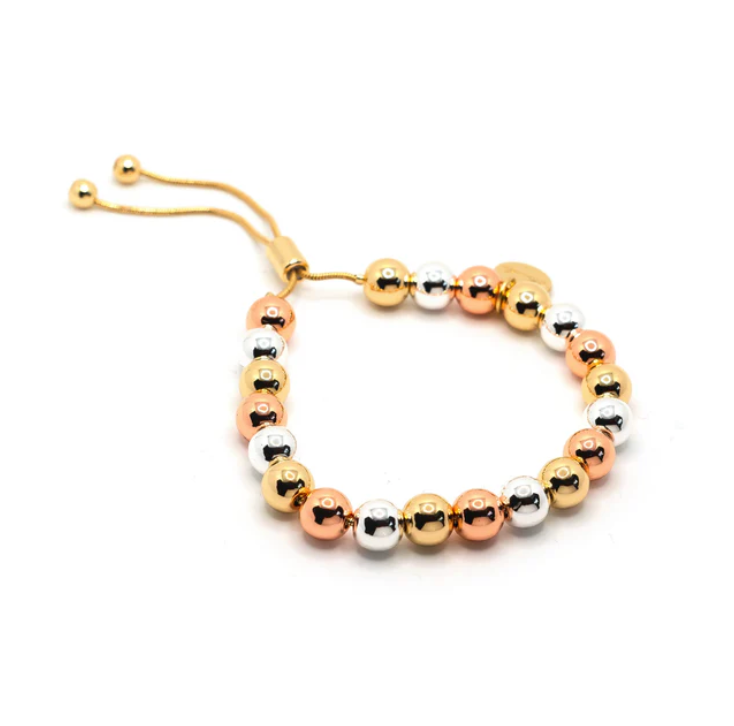 Material: Gold plated brass beads, Rhodium / White Bronze plated silver beads